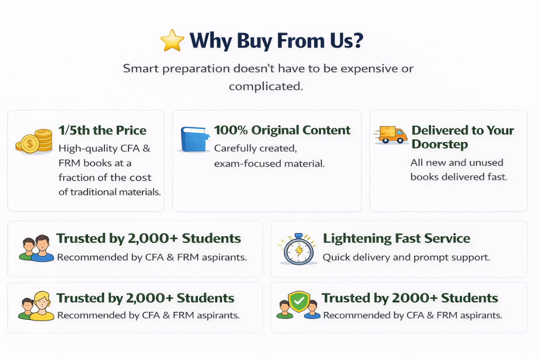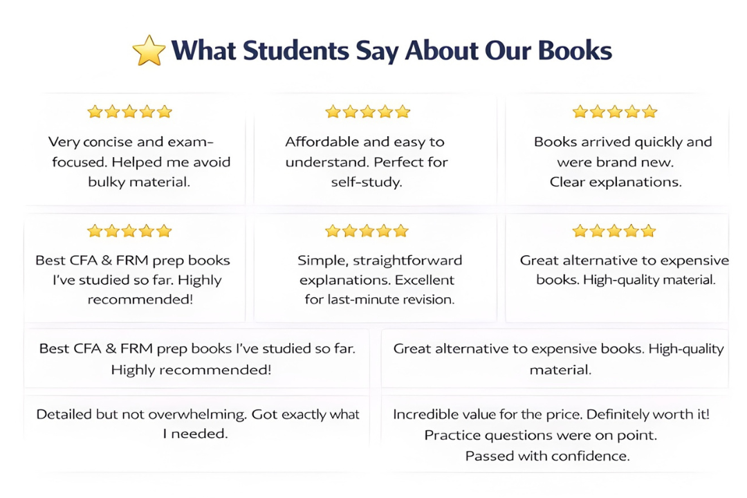 Our exam-oriented CFA & FRM books combine original content with student-friendly pricing to help candidates prepare with confidence.